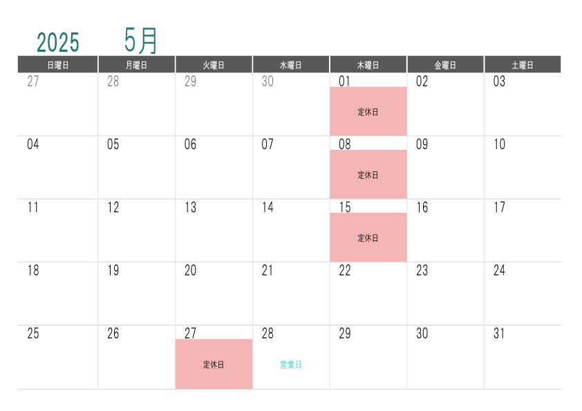 ※5/15は定休日となりました。また、5/28は営業いたします。