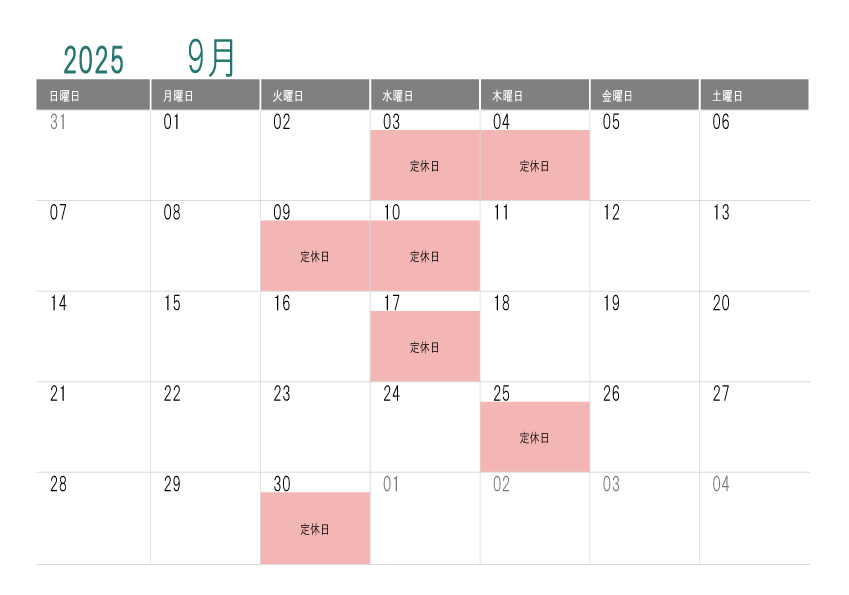 *9/9(火)はお休みになりました。宜しくお願いいたします。(9/8更新)